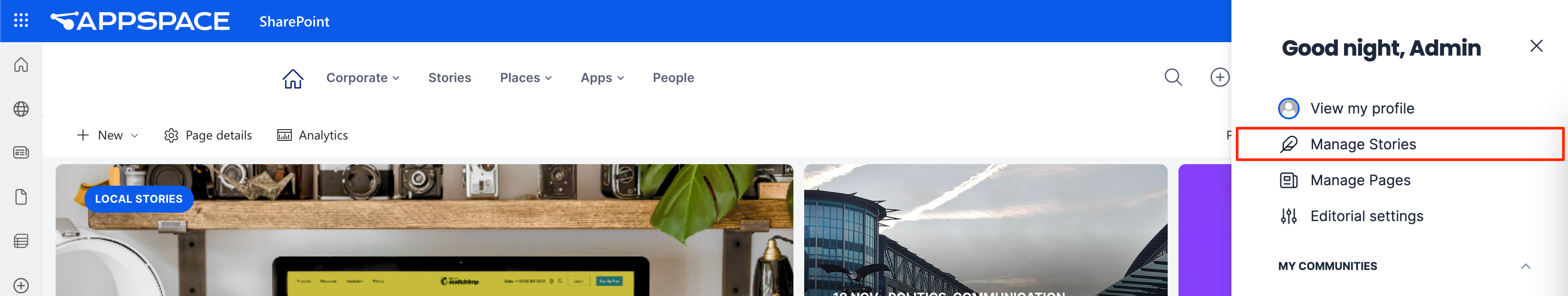 This article provides instructions to create and manage Stories on the Appspace SharePoint Intranet .