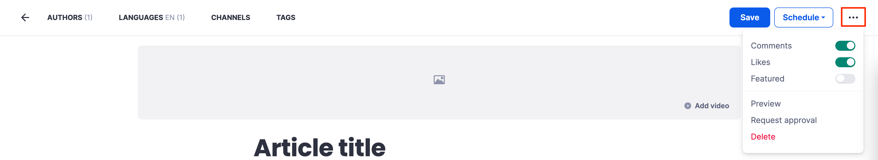 • Comments (Enabled by default) Toggle to disable comments on the article.